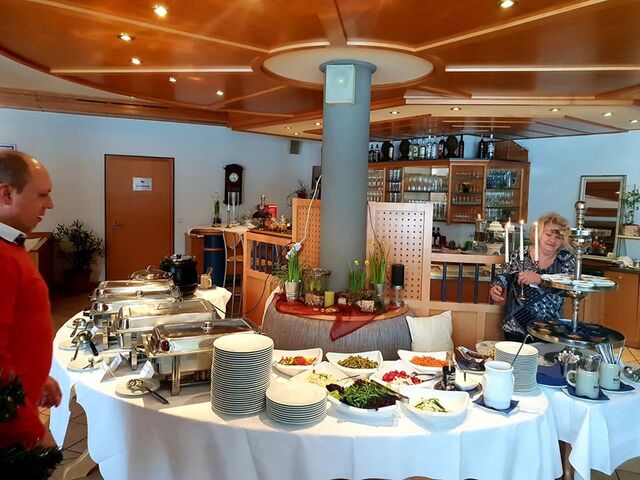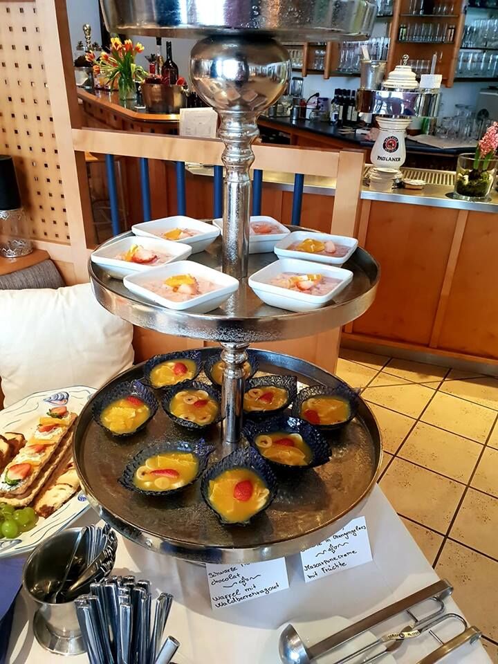 Our German cuisine will give your tastebuds a meal to remember. To go with our tasty food we also offer a range of refreshing drinks to complete your meal. We're known for our special local cuisine and distinct regional dishes. Many come to us to satisfy their sweet tooth with our heavenly desserts or our delectable tarts – either as a well deserved dessert after a delicious meal or as a tasty snack. We're always happy to serve you a delicious lunch or dinner in a relaxing atmosphere. You'll be spoiled for choice with our delicious buffet of tasty dishes. Take advantage of our free WiFi to share your photos and experiences while you're with us. We'll make sure every meal is enjoyable for the whole family – our kids corner is the perfect place for your little ones to pass the time.